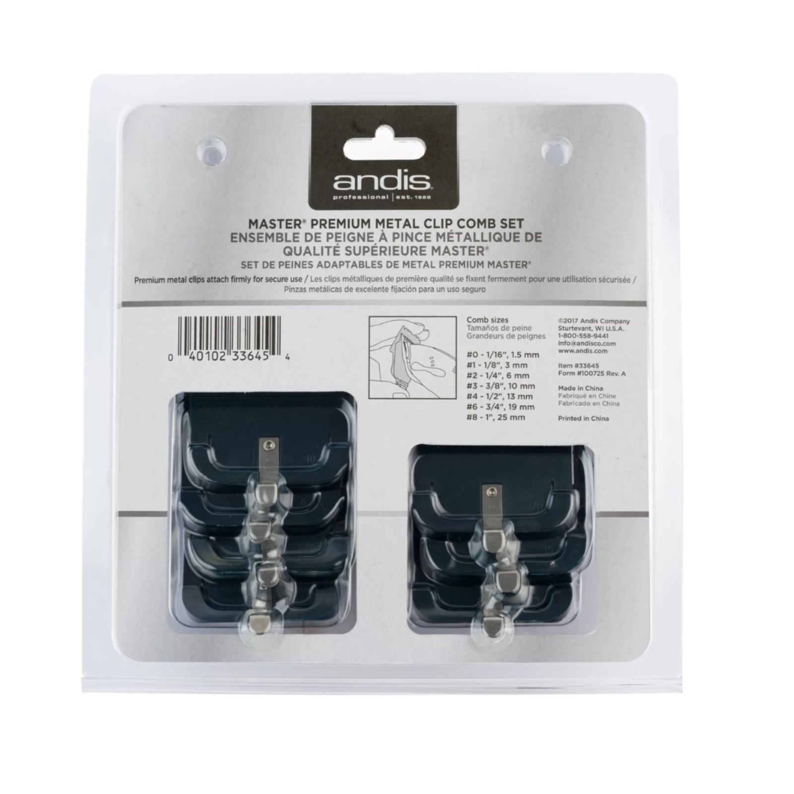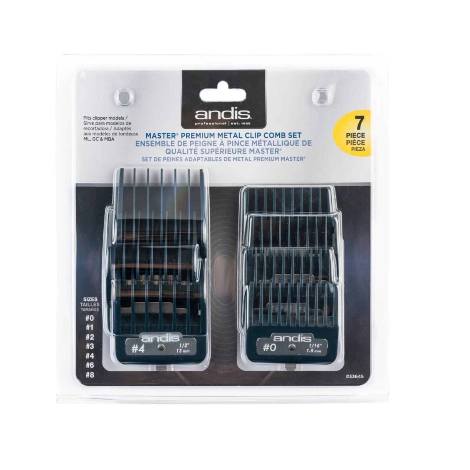 Andis Set Češljeva Master Premium sadrži 7 češljeva različitih veličina (od 1,5 mm do 25 mm), izrađenih od visokokvalitetnog materijala koji obezbeđuje trajnost i stabilnost tokom rada. Namenjeni su za precizno šišanje i fade prelaze, a kompatibilni su sa više modela Andis mašinica.