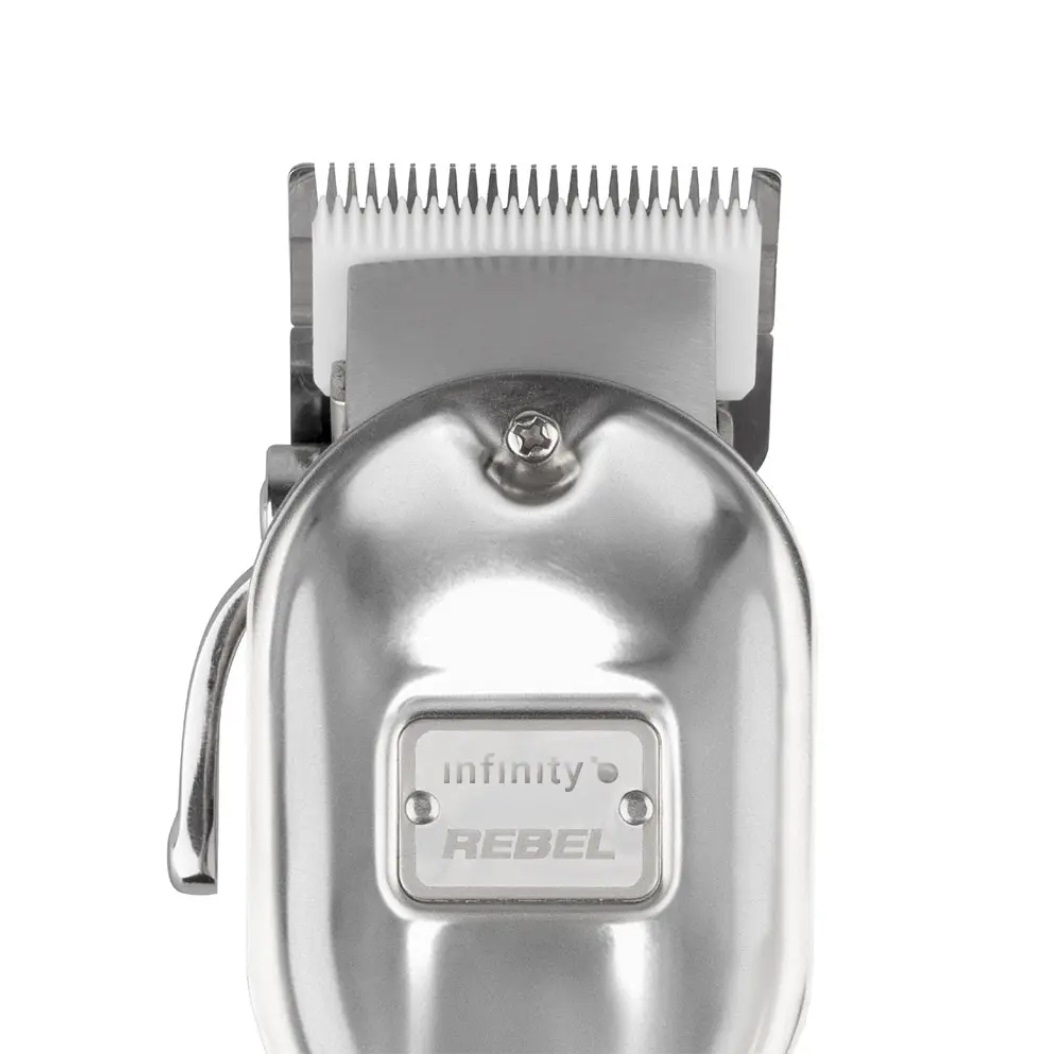Infinity Rebel je profesionalna berberska mašinica za šišanje koja kombinuje rotacioni motor od 10.000 sečenja u minuti, keramička ultra-oštra sečiva i lagano aluminijumsko kućište za maksimalne performanse u svakodnevnom radu. Idealna za šišanje i suve i mokre kose, ova mašinica garantuje visoku preciznost i dugotrajan rad bez pregrevanja.