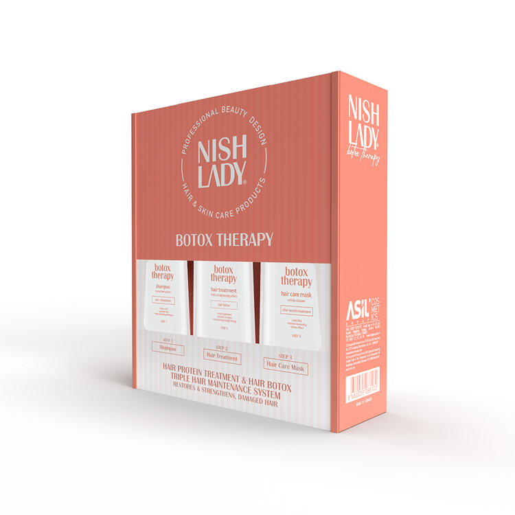 NishLady Botox Set je kompletna trofazna nega koja revitalizuje oštećenu kosu, popunjava vlakna iznutra i vraća joj sjaj, elastičnost i mekoću. Zahvaljujući naprednoj formuli sa hidrolizovanim keratinom, Panthenolom, uljem inke oraha i botox efektom, ovaj set je idealan za suvu, hemijski tretiranu i oštećenu kosu.
