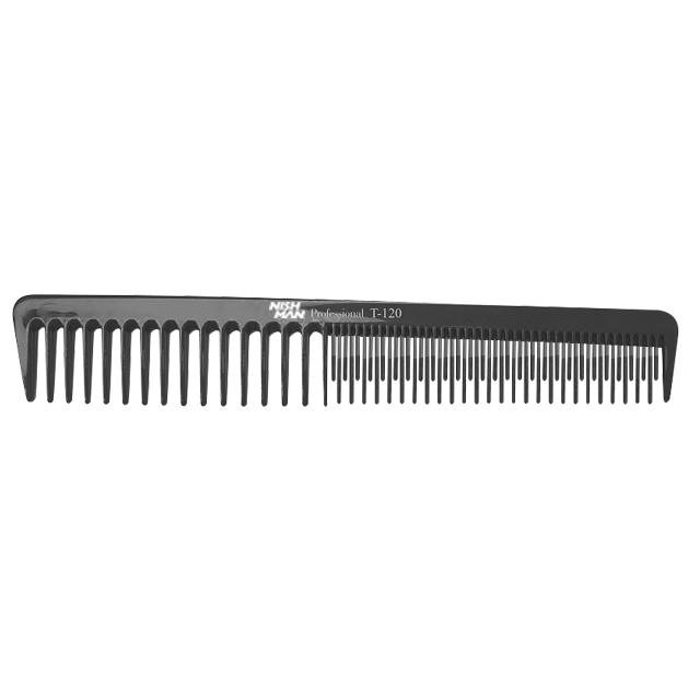 Nishman Češalj 120 je profesionalni češalj sa kombinovanim zupcima, dizajniran za precizno šišanje, raščešljavanje i kontrolu kose tokom stilizovanja. Njegov asimetrični raspored zubaca – široki s jedne i gusti s druge strane – omogućava lak prelazak između različitih tehnika rada, idealno za fade, layering i klasične frizerske postupke.